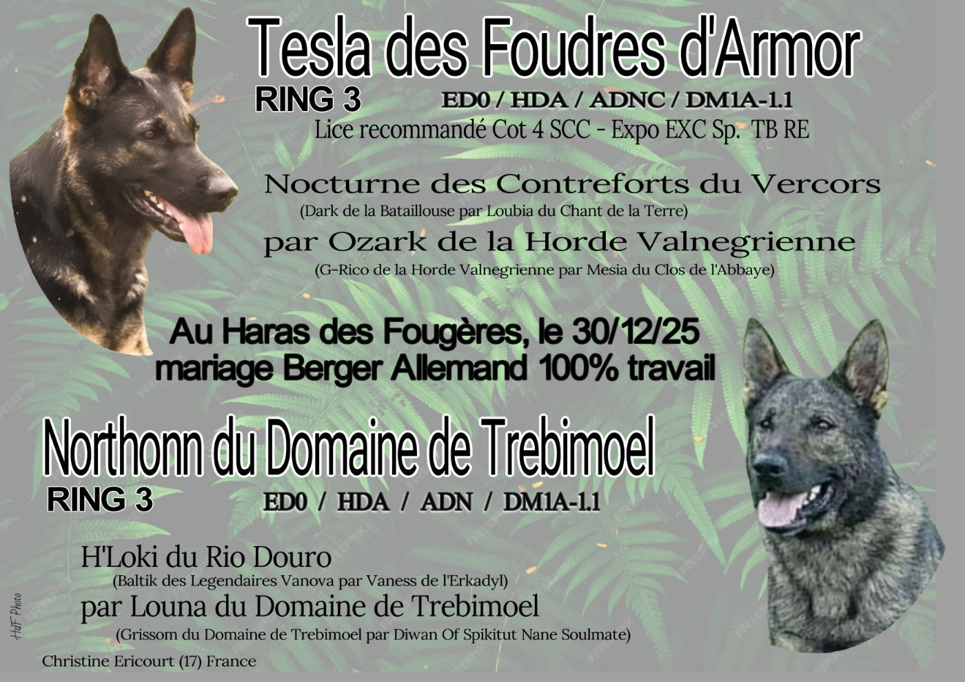 Notre 1er MARIAGE en BERGER ALLEMAND (dos droit ) LIGNEE TRAVAIL, verra le jour fin fev 2026 !! notre gentille TESLA DES FOUDRES D'ARMOR a ete mariée a NORTHONN d...